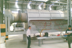 •煅燒回轉主要由燃燒系統、控制系統、筒體、窯體、驅動裝置、喂料和卸料系統等六部分組成。所有的部件都安裝在由鋼結構制作的整體框架上。