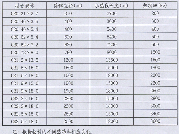 煅燒回轉窯的設計需要根據煅燒氣氛、煅燒產量等工藝參數確定,通用的規格有: